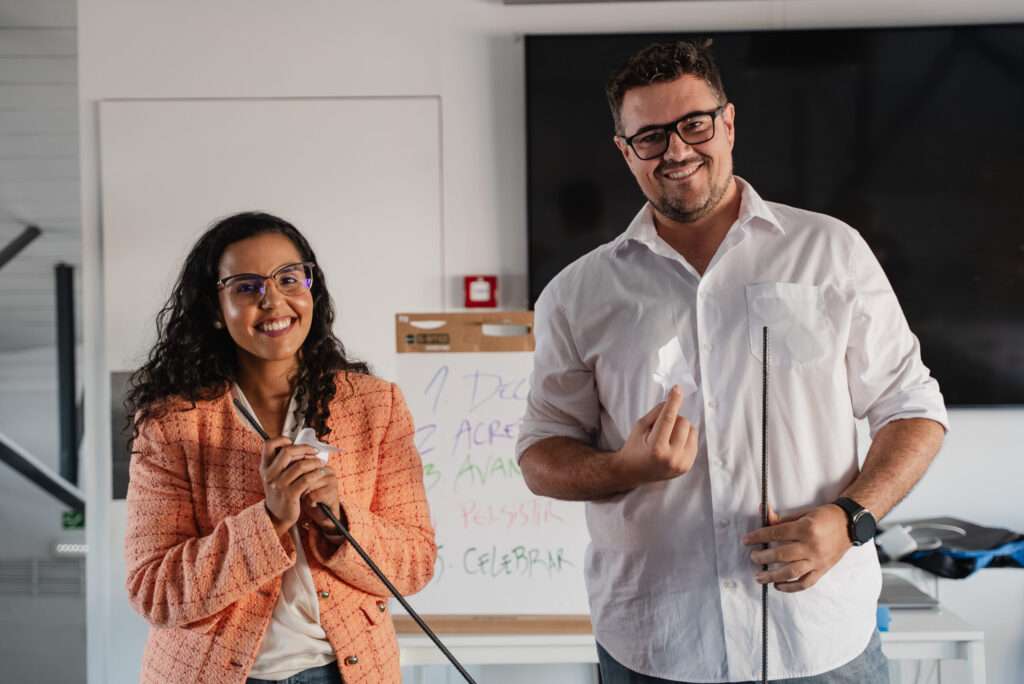 De regresso ao lounge, os participantes tiveram acesso a uma sessão de formação conduzida por João Prata, que dinamizou uma atividade de team building marcada pela reflexão e pela aprendizagem colaborativa.